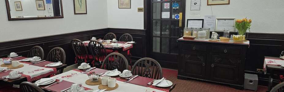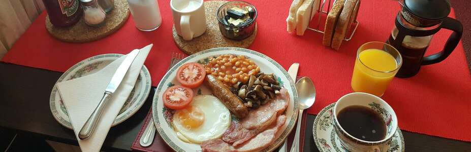 Breakfast available / £12/ and is served in our country-style dining room on the ground floor. We cater for vegetarians/gluten free,continental and Traditional English Breakfast.
